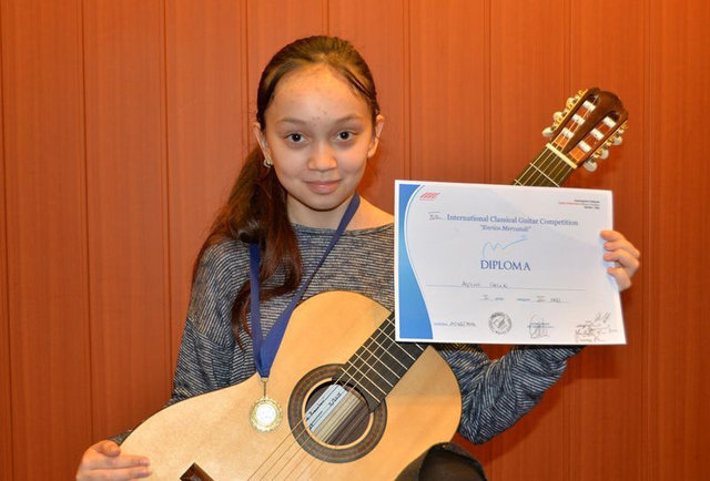 Mersin Üniversitesi Devlet Konservatuvarı Klasik Gitar Bölümü öğrencisi Aylin Çelik (13), Romanya’nın başkenti Bükreş’te düzenlenen ‘Eduard Pamfil Uluslararası Genç Gitar Festivali’nde birinci oldu. Aylin, uluslararası düzeyde tanınan bir sanatçı olmayı amaçlıyor.